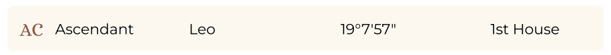 *Remember: Your Rising Sign is the same thing as your “AC”, “AS”, or “Ascendant” and your Rising Sign will always be in your 1st House.